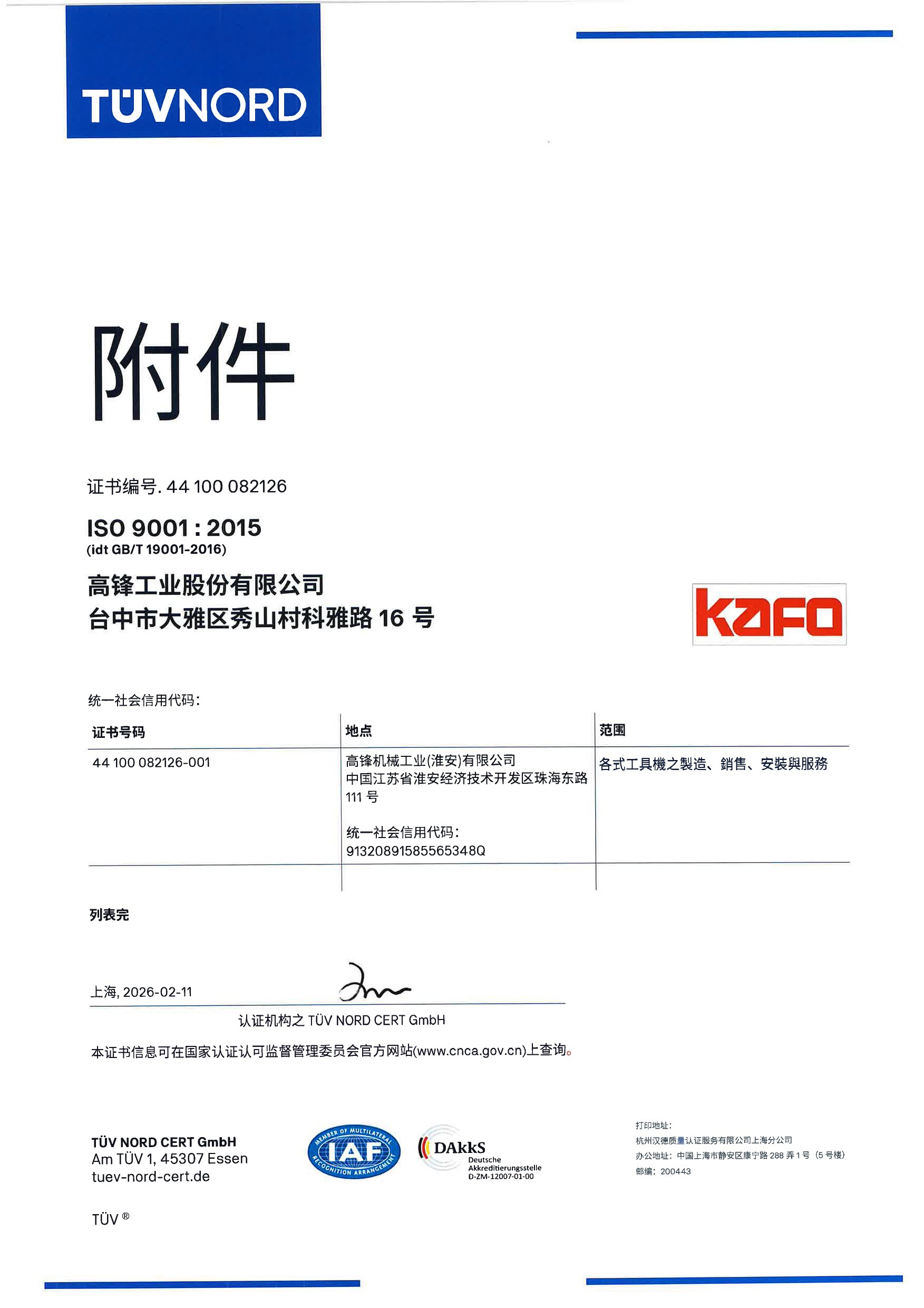 高鋒ISO9001 簡體中文證書-2( 期限20260218~20290217)