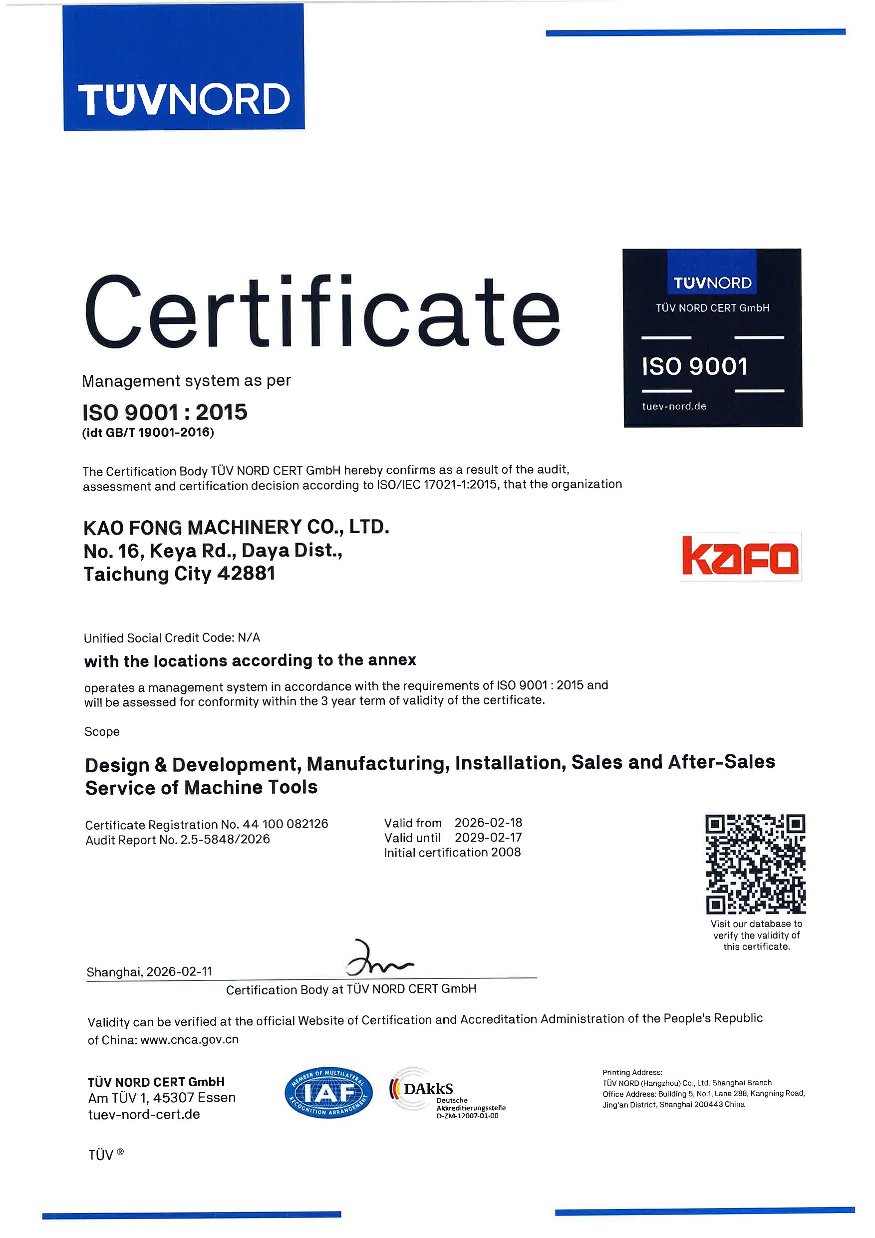 高鋒ISO9001 英文證書-1( 期限20260218~20290217)