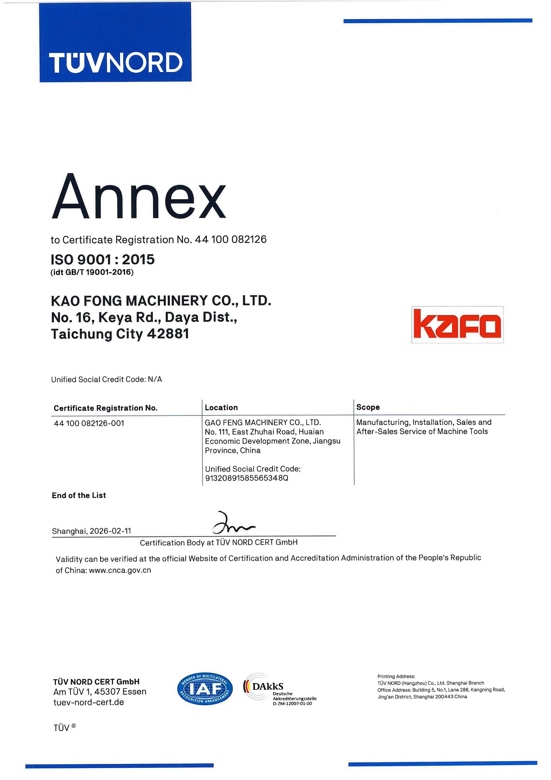 高鋒ISO9001 英文證書-2( 期限20260218~20290217)